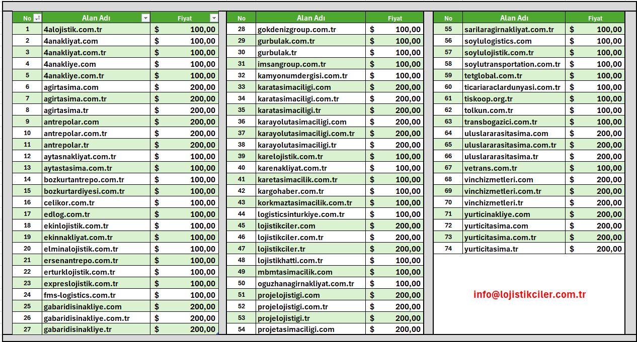 Tüm alan adları pasif durumdadır ve yalnızca yatırım amacıyla tutulmuştur.
